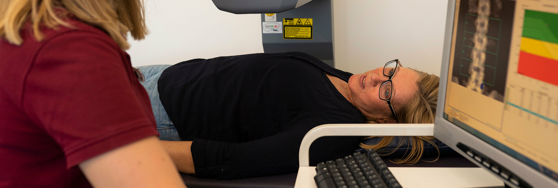 Eine Knochendichtemessung kann eingesetzt werden, um festzustellen, ob jemand Osteoporose hat und wie hoch das Risiko für einen Knochenbruch ist. Sie wird auch eingesetzt, um den Verlauf einer Behandlung zu beobachten.
